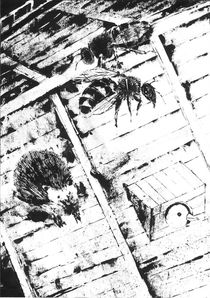 While working on this project I have been thinking about all the one-way journeys taken by those who flee war, violence, and persecution. On this boat, Noah is nowhere to be found. This rescue ship was entirely designed and built by the animals themselves. They chose to depart after discovering they were “other minds.” Those seen on the boat are largely characters from well-known fables and parables. Caught between worlds, these creatures learn to live together aboard their ark, free of human narratives. The Ant is attempting to repair his friendship with the Cicada, the Hare is polite to the Tortoise, and a lovely dialogue is taking place between the Wolf and the Lamb. The work is composed of smaller sections, each representing a chapter in a bigger plot. The work can be viewed as a series of pages or as a whole story.